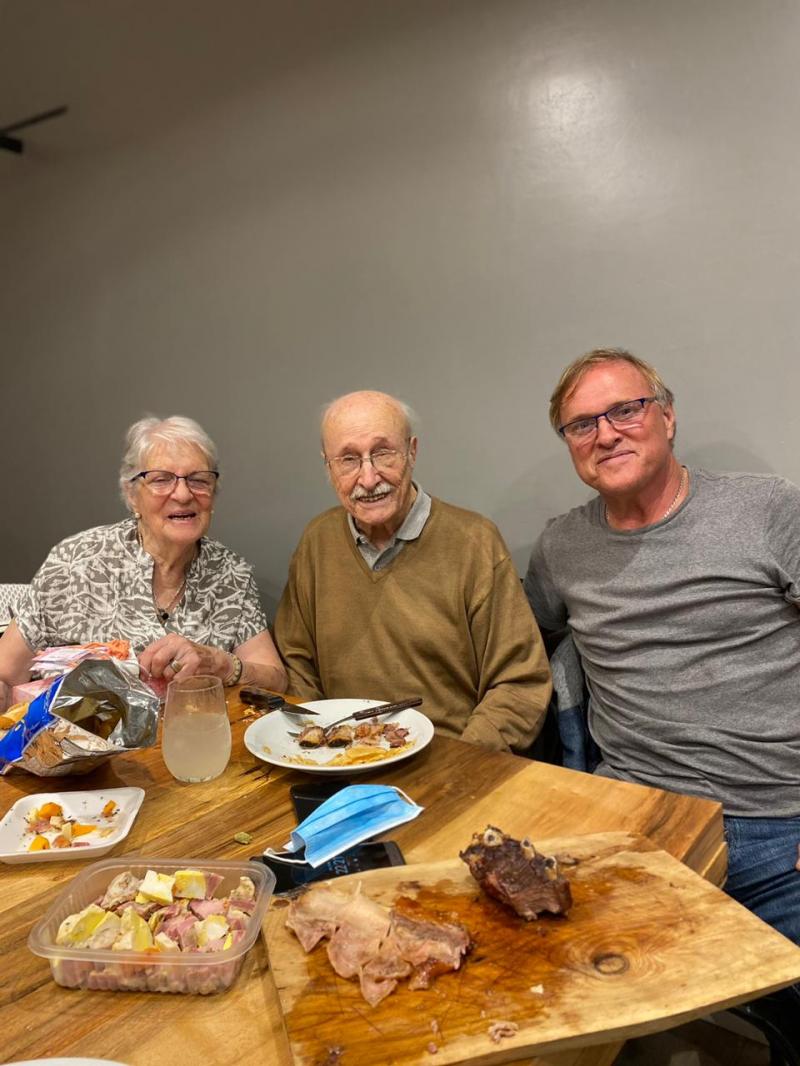 Foto: Alejandro con sus padres, Nilda y Oscar, celebrando el cumple con un asado argentino